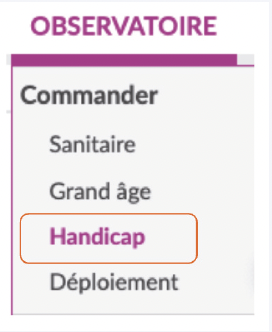 Une fois connecté à ViaTrajectoire, passer votre souris sur l’onglet Observatoire, puis cliquer sur “Handicap”