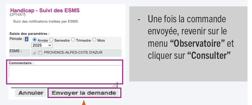 - Un commentaire est obligatoire cliquer sur “Consulter” lors de la commande.