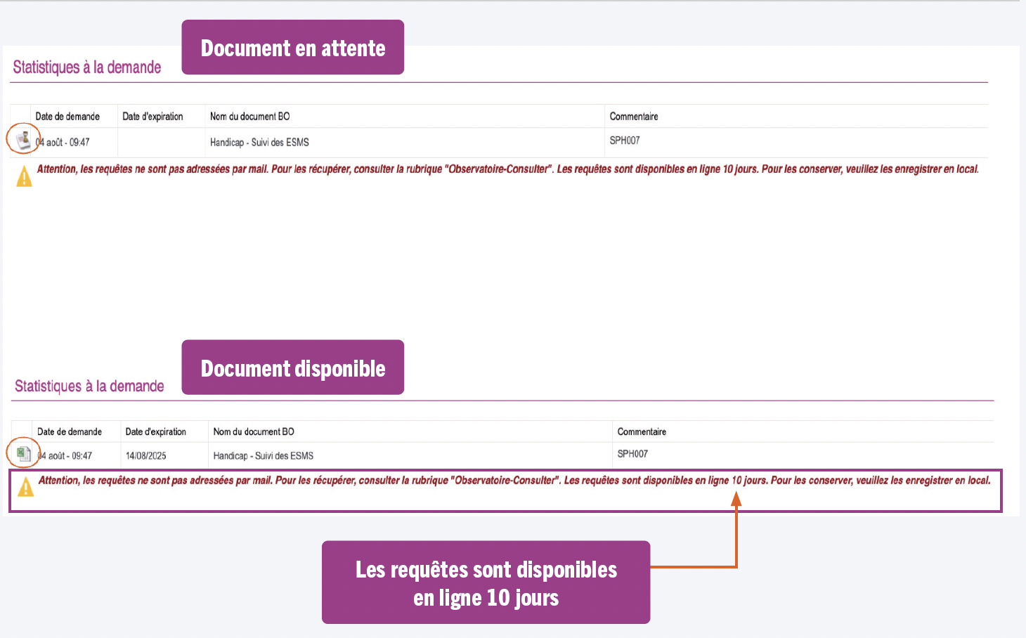 Informations statistiques reçue en différé : À noter : la commande de statistiques doit être anticipée : celles-ci sont accessibles quelques minutes après la commande dans l’onglet “Observatoire”, “Consulter” et disponibles pendant 10 jours.